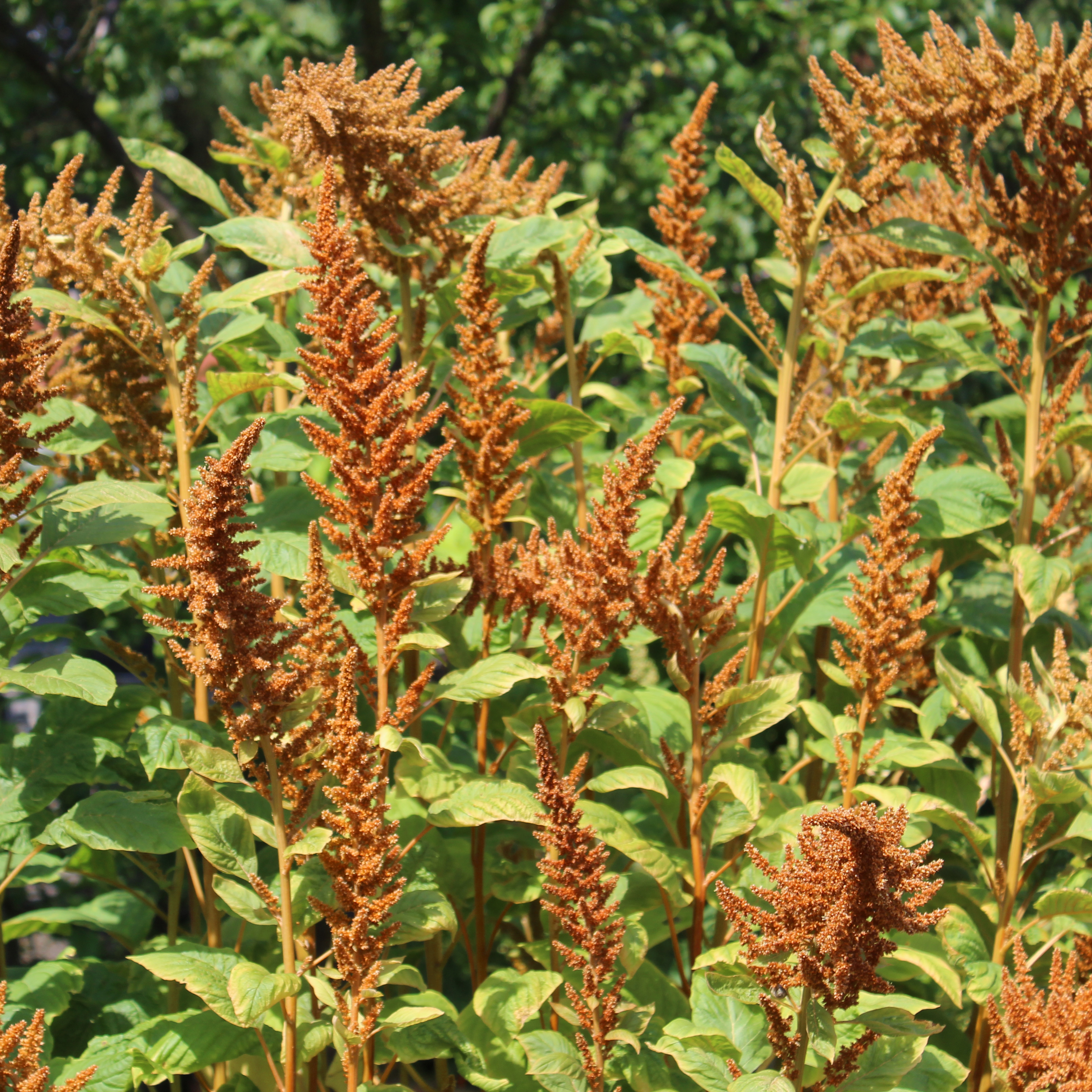 Amaranthus cruentus Die Blütenstände sind orange, wie auch die Blattstiele. Auch Blätter, besonders der frische Austrieb, sind orange überhaucht. Azhurnyy ist eine russische Sorte. Die Samen werden auf unterschiedliche Art verwendet: gemahlen als Mehl, gekocht als Zutat für Müsli oder als Beilage (lecker auch gemischt mit Reis!). Die jungen Blätter wie Spinat verwenden. Bild 6: junge Pflanzen im Mai 200 Korn Standort: Sonne, Halbschatten Lebensform: einjährig Verwendung: Gemüse Verwendbare Teile: Blätter, Samen Wuchshöhe: 150cm