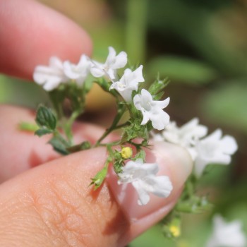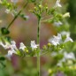 Calamintha nepeta Weißblühende Form der Bergminze mit hübschen, kleinen Lippenblüten. Diese werden gern von Schmetterlingen und Bienen angeflogen. Die Blätter haben einen leckeren, intensiven Minzgeschmack, anders als bei echten Minzen, eher wie ein Eisbonbon. Sehr lecker. Die Pflanzen wachsen buschig und staudig, dass heißt sie stehen dauerhaft an einem Ort. Wenn man sie lässt, sät sich die weiße Bergminze selbst im Garten aus. In kargen Mauerfugen, in denen sonst nichts wächst, fühlt sich Bergminze wohl. 20 Korn Standort: Sonne, Halbschatten Lebensform: halbwinterhart, mehrjährig Verwendbare Teile: Blätter, Blüten Verwendung: Küche, Tee, Heilen, Duft, Bienen- und Insektenweide Wuchshöhe: 60cm