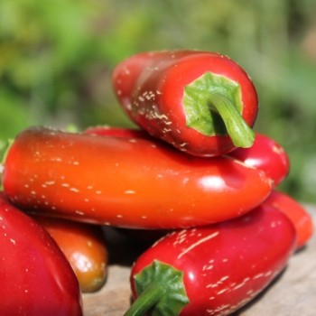 Capsicum annuum Ja, wir mögen Chilis ohne Schärfe. Warum? Weil nicht alle gern scharf essen und vor allem, weil Chilis mehr können als einfach bloß scharf zu sein. Sie haben viele Aromen, die man bei Paprika einfach nicht antrifft. Nadapeno ist eine Chilisorte aus den USA. Ein klassischer Jalapeno aber ohne Schärfe. Der Geschmack ist sehr würzig. Bestens auch für Kinder als Snack in der Brotbüchse. Auf den dickwandigen, saftigen Früchte finden sich die typischen Korkrisse. Das ist kein Makel, das ist ein Qualitätszeichen. 10 Korn Standort: Sonne, Halbschatten Lebensform: mehrjährig Verwendbare Teile: Früchte Verwendung: Würzen Wuchshöhe: 80cm