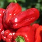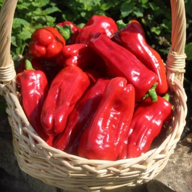 Ein großer und ergiebiger Chili aus der Türkei, so groß wie manche Paprika. Ein echter Massenträger! Die Früchte sind vorn mit Nasen versehen, meist drei, manchmal auch vier. Daher hat er auch seinen Namen, Üc Burun heißt „drei Nasen“. Die Sorte gibt es in scharf und in Paprika-unscharf (siehe bei Paprika), so wie viele türkische Sorten in beiden Varianten existieren. Wir haben beide, auf diesen hier waren wir im wahrsten Sinne des Wortes besonders scharf. Reift sehr früh für einen Chili, schon Ende August, genau zu der Zeit, in der anderes Sommergemüse noch Mitten in der Ernte ist - man will schließlich nicht erst bis zum Herbst warten, um Tomaten, Gurken und anderes Gemüse damit zu würzen.