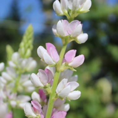 Lupinus elegans Blüten gehen weiß auf und färben sich dann nach und nach rosa ein. Sie verströmen einen angenehmen Duft, einen Fräuleinduft. Die Pflanzen mit ihren gefiederten Blättern können sehr groß werden, was man nicht unbedingt von einer Lupine erwartet. Es sind richtige Büsche obgleich sie nur als selbstaussäende Einjährige unterwegs sind. Sie blühen den ganzen Sommer lang, selbst wenn sich schon die ersten Samenkapseln im unteren Bereich gebildet haben, werden oben weiter Blütenknospen nachgeschoben. 20 Korn Standort: Sonne, Halbschatten Lebensform: einjährig Verwendbare Teile: nicht essbar Verwendung: Duft, Bienen- und Insektenweide Wuchshöhe: 100cm