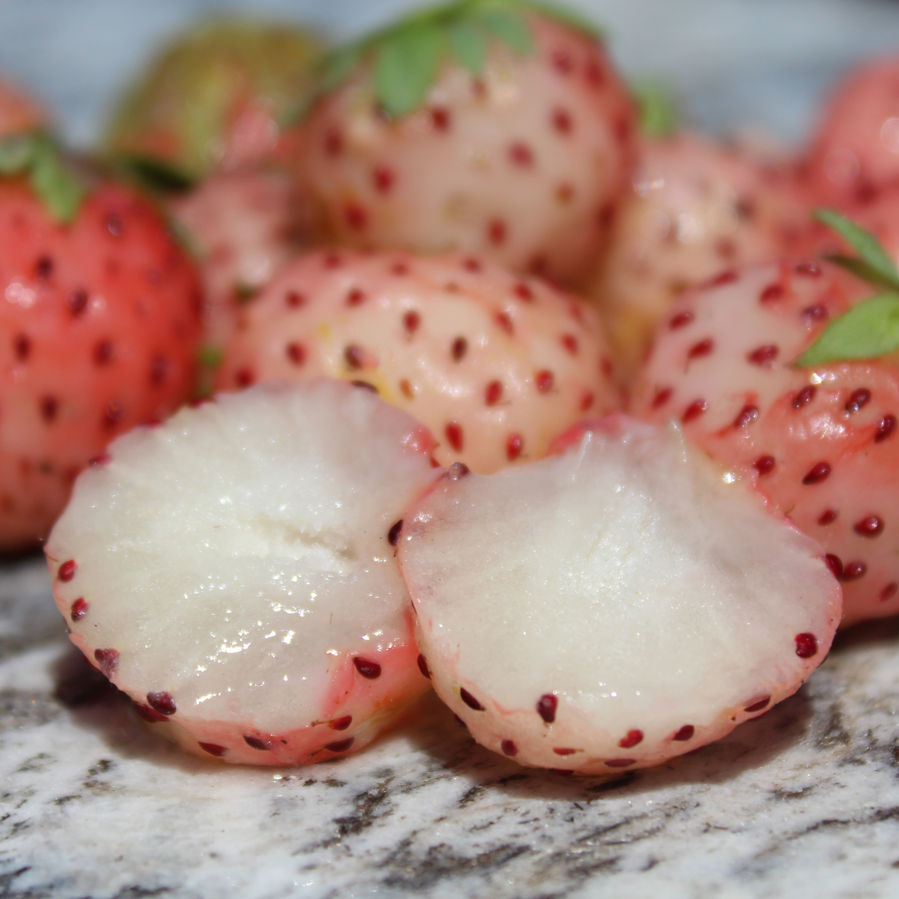 Fragaria x ananassa Weiße Erdbeere mit rosa Bäckchen! Geschmack: außerordentlich süß und sehr aromatisch. 1860 entstanden und noch bis 1940 in den alten Gartenbüchern besonders empfohlen. Ein ganz eigener Duft nach Ananas entströmt den Früchten. Ihr Geschmack ist charakteristisch und einzigartig. Das Laub ist typisch mattgrün und nicht glänzend, eine Sorte, die man auch ohne Früchte sofort erkennt. Junge Ausläufer bilden in manchen Jahren eine zweite Ernte im Herbst. Standort: Sonne, Halbschatten Lebensform: winterhart, mehrjährig Verwendbare Teile: Früchte Verwendung: Obst, Blätter für Tee Wuchshöhe: 15cmcm Topfgröße: 0,35l