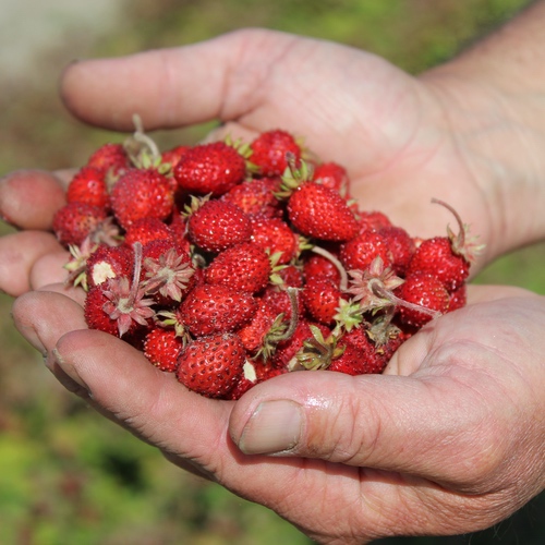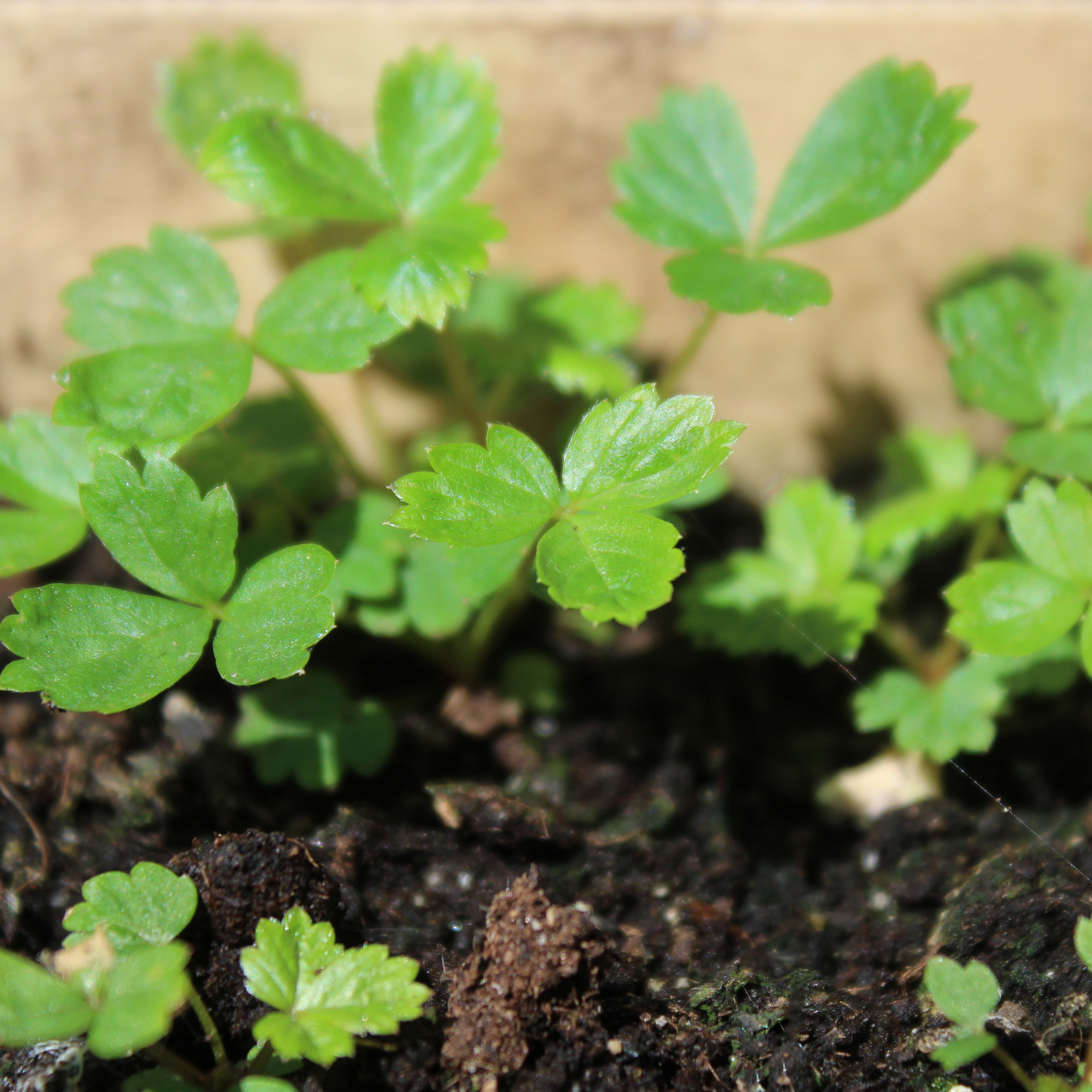 Fragaria vesca var. semperflorens Erdbeeren aus Samen zu ziehen, ist einfach. Die feinen Samen nur wenig mit Erde bedecken und leicht feucht halten. Die Samen keimen zügig, die Pflanzen sind aber noch winzig. Daher nicht zu früh pikieren, sondern warten, bis sich etwa das fünfte Blatt gebildet hat. Atilla ist momentan die einzige Monatserdbeersorte, die Ausläufer bildet und aus Samen gezogen werden kann. Die Pflanzen tragen bereits im ersten Jahr nach der Aussaat und bilden auch fleißig Ausläufer, die ebenfalls reich tragen. In kurzer Zeit bilden sich dichte Teppiche mit den kleinen Erdbeerpflänzchen, von denen man von Sommer bis in den Herbst die süßen, roten Früchte naschen kann. Bild 3: Sämlinge, ein wenig können sie noch wachsen, dann werden sie pikiert. 50 Korn Standort: Sonne, Halbschatten Lebensform: winterhart, mehrjährig Verwendbare Teile: Früchte Verwendung: Obst, Blätter für Tee Wuchshöhe: 15cm