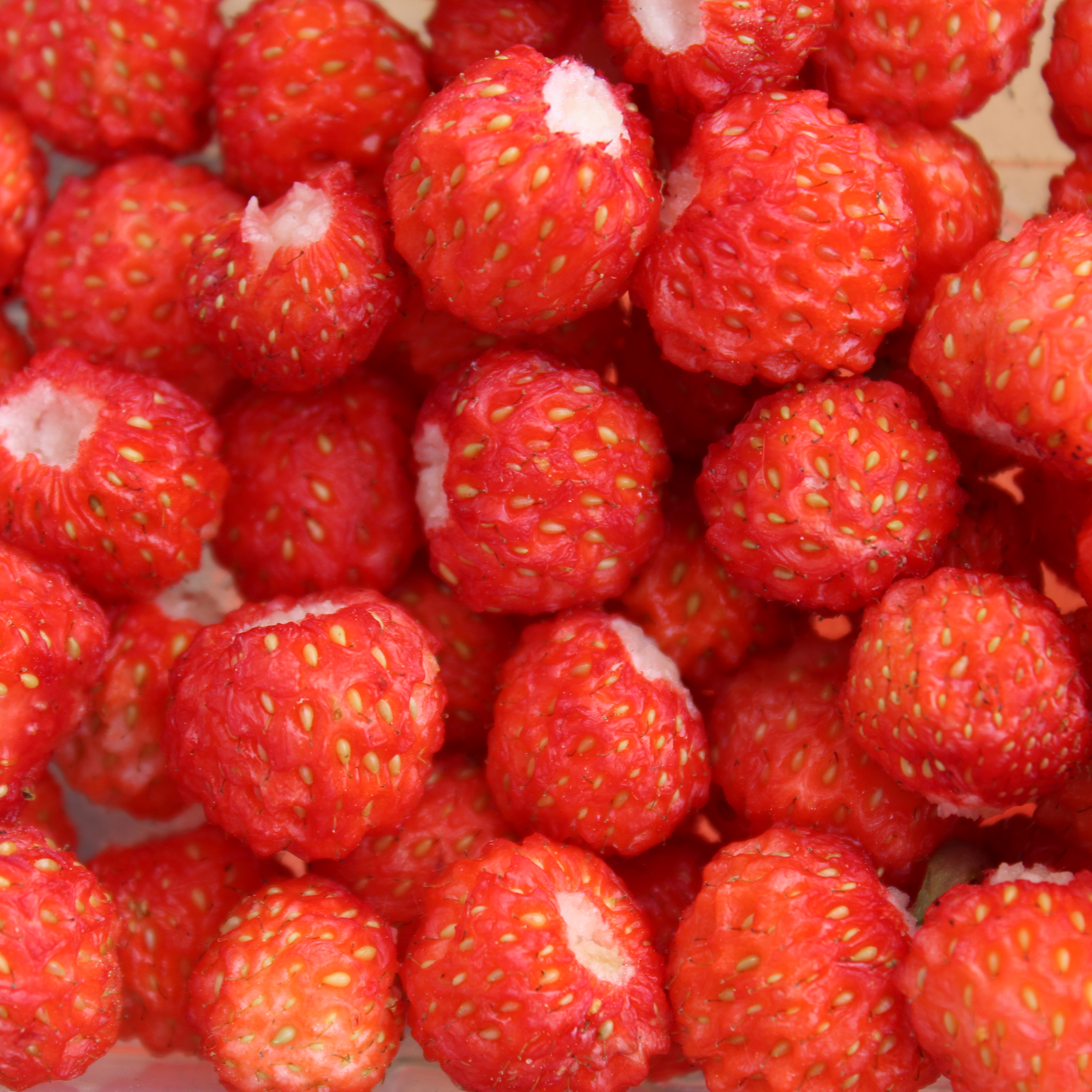 Fragaria virginiana Gehört wie die Weiße Lößnitzer zu den Weinbergserdbeeren. Die Frucht schmilzt förmlich auf der Zunge, auch wenn sie nicht betont süß erscheint. In normalem Gartenboden entwickeln die Pflanzen riesige Blätter - teilweise größer als bei den normalen Gartenerdbeeren. Die Pflanze liebt einen heißen, eher trockenen und kargen Standort und wächst hier auch ihrer Natur entsprechend etwas zurückhaltender. Der praktische Ratgeber im Obst- und Gartenbau 1919 schreibt zur Kultur der Weinbergserdbeeren: „… Weinbergserdbeere jedoch,..liebt die Nordsüdost- und Westsüdlage, in freier sonniger Lage gewinnt sie ihr so vorzügliches Aroma…“ Die Sorte wurde von Klaus Olbricht 2008 in einem Domherrengarten in Wurzen gefunden. Die Früchte sind mindestens doppelt bis dreimal so groß wie die Wildart. Standort: Sonne, Halbschatten Lebensform: winterhart, mehrjährig Verwendung: Obst, Blätter für Tee Verwendbare Teile: Früchte Wuchshöhe: 15cm Topfgröße: 0,35l