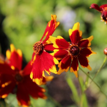 Coreopsis tinctoria Zweifarbige Blütenblätter, innen mit dunkelmahagoni Ring, außen goldgelb. Die Blütenstiele lang und dünn, wie halten sie die Pracht nur? Mädchenauge wird seit dem frühen 18. Jahrhundert angebaut. Damals geschätzt als Färbepflanze, heute wegen der anmutigen, sternenförmigen Blüten und dem locker-leichten Pflanzenaufbau beliebt in wilden, naturnahen Blumenbeeten. In milden Wintern verhalten sich die Pflanzen sogar mehrjährig, ansonsten als schnell blühende Einjährige. Die Blüten sehen toll im Salat aus. 200 Korn Standort: Sonne, Halbschatten Lebensform: einjährig Verwendbare Teile: Blüten Verwendung: Essbare Blüten, Bienen- und Insektenweide Wuchshöhe: 40cm