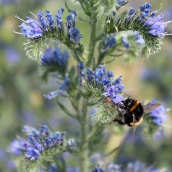 Echium vulgare Eine beindruckende Wildpflanze, wenn sie ihre blauen Blütentrauben in die Höhe reckt. Schmetterling und Bienen laben sich an den Blüten. Sie sind essbar. Natternkopf ist ein Vertreter der Raublattgewächse, zu denen auch der Borretsch gehört. Die Blüten einfach auszupfen und damit Speisen dekorieren. 75 Korn Standort: Sonne, Halbschatten Lebensform: winterhart, zweijährig Verwendbare Teile: Blüten Verwendung: Essbare Blüten, Bienen- und Insektenweide Wuchshöhe: 80cm