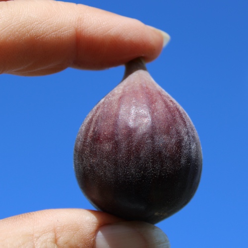 Ficus carica ‚Hardy Chicago’ Die braun-violetten Früchte haben ein erdbeerfarbenes, intensiv leuchtendes Fruchtfleisch. Die Feigen schmecken sehr gut, süß und lecker. Es ist eine Feigensorte aus Nordamerika, entdeckt bei einem Mann aus Chicago. Der Ursprung liegt aber in Italien, an der Hanglage des Ätnas auf Sizilien. Die Pflanzen bilden zweimal im Jahr Früchte, einmal im Sommer - den sogenannten Brebas - am zweijährigen Holz und einmal im Herbst am neuen Austrieb. Die Sommerfeigen sind sind so zahlreich, die Herbstfeigen bilden die Haupternte. Sie reifen sehr früh, je nach Jahr ab der zweiten Augusthälfte. Bei Feigen ist es nicht ungewöhnlich, dass die Schalenfarbe etwas variiert. In voller Sonne werden sie dunkellila, in einem regnerischen Jahr oder wenn sie im Schatten der Blätter gebildet werden, auch nur fleischfarben. Letzteres ist nicht von Nachteil, es beeinflusst den süßen Geschmack nicht. Bei Versuchen erwies sich Hardy Chicago als sehr winterhart. Bis -22°C haben die Triebe überlebt, bei Temperaturen darunter sind sie oberirdisch abgefroren, haben aber im Frühjahr aus dem Wurzelstock wieder ausgetrieben. Standort: Sonne, Halbschatten Lebensform: winterhart, mehrjährig Verwendbare Teile: Früchte Verwendung: Obst Wuchshöhe: 400cm Topfgröße: 1,1l