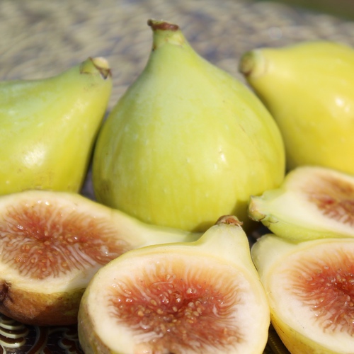 Ausverkauft! Ficus carica ‚Goute d‘Or’ Große gelbgrüne Früchte mit ausgezeichnetem, vollmundigem, erstklassigem Geschmack. Die Früchte sind etwa 90g schwer. Sehr alte Feigensorte, noch vor 1667 entstanden. Standort: Sonne, Halbschatten Lebensform: winterhart, mehrjährig Verwendung: Obst Verwendbare Teile: Früchte Wuchshöhe: 400cm Topfgröße: 1,1l