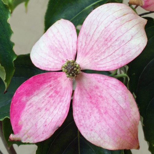 Cornus kousa Miss Satomi ist eine japanische Selektion von Akiri Shibamichi aus dem Jahr 1980. Bei Einführung DIE Sensation schlechthin, denn die Pflanzen bildeten bombastische, rosa Blüten. Die Blätter sind ebenfalls auffällig: dunkelgrün, breit abgerundet, mit tiefliegenden Blattadern, die teilweise auch rosa gefärbt sind. Die Fruchtschale ist halbglatt, soll heißen, sie sind weniger ausgebeult. In jeder Frucht befindet sich das zartschmelzende, köstlich gewürzte, süße Fruchtfleisch. Standort: Sonne, Halbschatten Lebensform: winterhart, mehrjährig Verwendbare Teile: Früchte Verwendung: Obst Wuchshöhe: 300cm Topfgröße: 1,1l