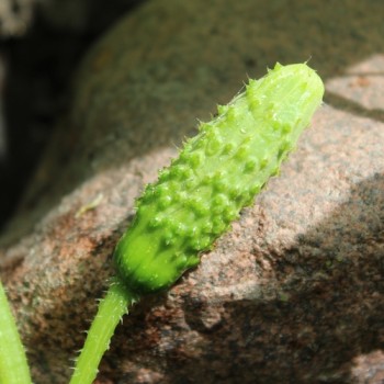 Cucumis sativus Spart Platz im Garten! Die kompakten Ranken benötigen nicht so viel Raum um zu wachsen. Trotzdem kann man ordentlich ernten, selbst wenn die Sorte nur im Kübel abgebaut wird. Bei uns hat sich die Sorte prima bewährt und wir sind überzeugt davon, dass sie zu den produktivsten Gurken gehört. Die Gurken sind jadegrün, die Schale runzelig, was interessante Gurkenscheiben beim Aufschneiden gibt. Das Fruchtfleisch ist schön knackig und zart. Am besten bei einer Länge von 12cm ernten. Die Sorte macht auch Kindern Spaß, die leckere Gurken mögen. 10 Korn Standort: Sonne, Halbschatten Lebensform: einjährig Verwendbare Teile: Früchte Verwendung: Gemüse Wuchshöhe: 40cm