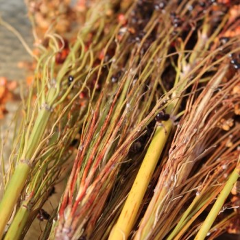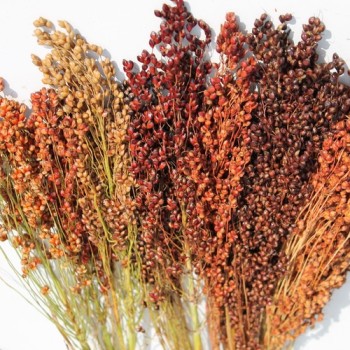 Sorghum bicolor Hoch werdende Hirse mit bunten Samenständen. Je nach Pflanze grün, rot, gelb, schwarz, orange oder beige. Die Samenstände sind im Herbst erntereif. Körner durch Dreschen von den Halmen befreien - die sind für die Hühner. Die verzweigten Halme sind das, was wir ernten wollen. Zusammengebunden und mit einem Strick um einen Holzstiel oder Bambusstab gewickelt, sind das schöne, sehr gut funktionierende Laubbesen. Fertig in wenigen Minuten. Natürlich kann man jede Größe basteln, für Kinder und für Erwachsene. Broom Corn ist keine Sorte im eigentlichen Sinne, es ist ein Mix aus vielen tradioniellen Hirsesorten wie Apache Red, Texas Black Amber, Tennessee Red, Nicaraguan Broom, Iowa Red, Hadley Kidd, Moyer Sonnen, Sattie Museum, Moyer Jensen Gold, Hungarian Red and Black, Ramirez South Chile und Kepley. 40 Korn Standort: Sonne, Halbschatten Lebensform: einjährig Verwendbare Teile: Samenstände mit Stängeln Verwendung: für Besen Wuchshöhe: 300cm