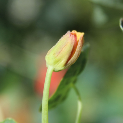 Tropaeolum minus Eine Kapuzinerkresse mit Farbwechsel. Lachsrot mit gelb über dunkelgrünem Laub an heißen Tagen. Je kühler es wird, ums weniger Rottöne bilden die Pflanzen aus. Im Herbst sind die Blüten dann hellgelb mit ganz wenig rot - sie blühen fortlaufend bis zum ersten Frost. Der Gesamteffekt ist unglaublich dekorativ. Blätter, Blüten und Knospen haben einen pfeffrigen Geschmack, ähnlich wie Ruccola - sehr lecker. 10 Korn Standort: Sonne, Halbschatten Lebensform: einjährig Verwendbare Teile: Blätter, Blüten, unreife Samen Verwendung: Würzen, Essbare Blüten Wuchshöhe: 30cm