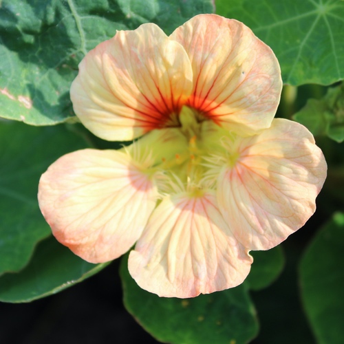 Tropaeolum minus Zartrosa Blüten über dunkelgrünen Blättern - Salmon Baby ist ein wahres Blütenmeer. Jede Blüte hat von innen her eine dunkelrosa Zeichnung. Die Blätter als Zutat für sommerliche Salate verwenden, die Blüten als essbare Dekoration. Die Pflanzen ranken nicht, sie bleiben kompakt. Die Pflanzen verschönern Steinmauern, Balkonkästen oder Gemüsebeete. Kapuzinerkresse mag Sonne, wächst aber auch im Schatten willig. Wer bis Juli aussät, braucht sich keine Sorgen machen, die Pflanzen entwickeln sich schnell und holen auf. 10 Korn Standort: Sonne, Halbschatten Lebensform: einjährig Verwendbare Teile: Blätter, Blüten, grüne Samen Verwendung: Würzen, Essbare Blüten Wuchshöhe: 30cm