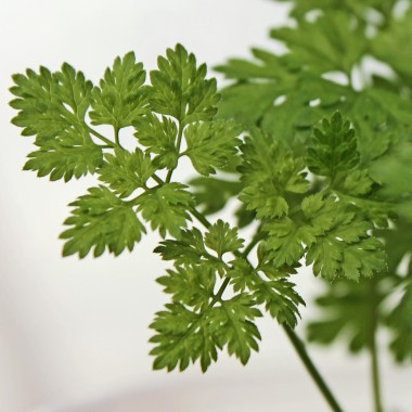 Anthriscus cerefolium Kerbel wächst schnell und kann bereits 6 Wochen nach der Aussaat geerntet werden. Sein unaufdringliches fein-süßliches Aroma passt zu allen Gemüsesorten. Fein hacken und großzügig drüberstreuen. Der Rand der Blätter ist feiner geschlitzt als der des gewöhnlichen Kerbels.
