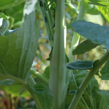 Brassica oleracea convar. acephala var. medullosa Markstammkohl ist ein Kohl, bei dem man das Mark der verdickten Stiele isst. Die Pflanze kann 2m hoch werden, bei gutem Boden können die Stiele einen Durchmesser von unglaublichen 10cm erreichen! Die Stiele müssen geschält werden, so wird das zarte Fleisch freigelegt. Es schmeckt fantastisch, in etwa wie Kohlrabi aber wesentlich feiner in der Textur, leicht süßlich, würzig. Wir haben verschiedene Versuche gestartet, z.B. ob die Pflanze einen Schnitt verträgt, wenn man sie nicht komplett aberntet, sondern sich immer nur so viele Stücke abschneidet, wie man gerade essen möchte. Nicht jeder braucht ja gleich den Gegenwert von 10 Kohlrabis... Also Versuch gestartet, zur denkbar ungünstigen Kohlzeit: im Sommer. Die Pflanzen faulten an den Schnittstellen nicht, es klappte! So hat man einen Vorrat von Sommer bis tief in den Winter an frischen, zarten Stielen. Die großen Blätter im Sommer sollte man ebenfalls essen. Fein geschnitten kochen oder braten. Markstammkohl ist ein winterharter Kohl, er dürfte damit auch für alle Permakulturgärtner von Interesse sein. Die Pflanzen kommen immer wieder, wenn man ihnen nicht erlaubt, Samen zu bilden. Die großen Blütenstände dafür vor der Umbildung zu Samenschoten abschneiden. Dieser Kohl ist nicht neu, im Gegenteil, es ist eine ganz alte Form. Geben Sie diesem wunderbaren Schatz einen Platz im Garten und erwecken ihn aus seinem kulinarischen Dornröschenschlaf! Bild 7: die Blütenknospen ab März können ebenfalls geerntet werden 220 Korn Standort: Sonne, Halbschatten Lebensform: winterhart, mehrjährig Verwendbare Teile: Blätter, Stiele, Blüten Verwendung: Gemüse Wuchshöhe: 200cm