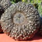 Cucurbita maxima Marina di Chioggia ist ein Landstrich und eine Stadt in Italien in der Nähe der Lagunenstadt Venedig. Die Kürbissorte war in der Jugendstilzeit sehr beliebt und verbreitet aufgrund des hübschen Aussehens. Auch heute sind Kürbisfans regelrecht fanatisch, allein schon, wenn nur der Name im Gespräch fällt. Die Früchte sind dunkelgrün, haben eine stark verknubbelte Schale und einen Turban, der teilweise sogar mintgrün gestreift ist. Das Fruchtfleisch ist delikat. Es hat eine eher trockene Konsistenz und ist wie geschaffen für die Verarbeitung z.B. als Gnocci. Rezept: Kürbisgnocci Einen Marina-Kürbis grob teilen, die Stücke etwa eineinhalb Stunden auf ein Backblech bei 180°C legen und weich garen. Das abgekühlte Fleisch von der Schale lösen. In einer Schüssel mit 190g Mehl und 40g Parmesan zu einem Teig kneten. Aus diesem kleine Kugeln formen und auf einer bemehlten Arbeitsfläche mit einer Gabel platt drücken. Die Gnocci in kochendes Wasser geben bis die Gnocci an die Oberfläche steigen. Mit Tomatensoße, Salbeibutter oder geriebenem Parmesan servieren. 7 Korn Standort: Sonne, Halbschatten Lebensform: einjährig Verwendbare Teile: Früchte, Blüten Verwendung: Gemüse Wuchshöhe: 40cm