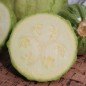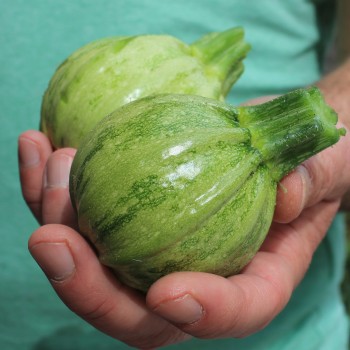 Cucurbita pepo Es ist ein Universal-Kürbis mit dicken Längsrippen. Die Früchte können jung wie Zucchini gegessen werden, sie sind dann hellgrün, das Fruchtfleisch ist zart und schmeckt hervorragend. Früchte dafür ernten, wenn sie etwa handtellergroß sind. Ausgereifte Exemplare erkennt man an der gelb-grünen Schale, sie wiegen nun 2-4kg. Das Fruchtfleisch verarbeiten, es hat einen intensiven Maronnengeschmack, die leckeren Samen knabbern. Tonda Padana ist eine kleine Kürbissorte aus Norditalien, der Name bedeutet „der Runde von Padanien“. Er schmeckt in allen Stadien ausgezeichnet. 7 Korn Standort: Sonne, Halbschatten Lebensform: einjährig Verwendbare Teile: Früchte, Blüten Verwendung: Gemüse Wuchshöhe: 40cm