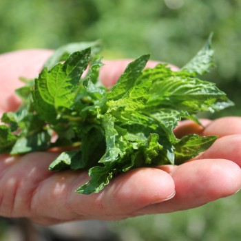 Mentha spicata ssp. Hat pinkfarbene Stängel und saftig grüne, leicht gekrauste Blätter. Das Aroma ist eine Mischung aus Früchten und starkem Minzgeschmack. Ist Bestandteil der orientalischen Joghurtsoße aus Sahnejoghurt, Knoblauch, Zitronensaft und Chili. Diese wird zu gegrilltem Fleisch und Gemüseauflauf serviert. Standort: Sonne, Halbschatten, Schatten Lebensform: winterhart, mehrjährig Verwendung: Küche, Tee, Heilen, Duft, Bienen- und Insektenweide Verwendbare Teile: Blätter, Blüten Wuchshöhe: 60cm Topfgröße: 0,35l