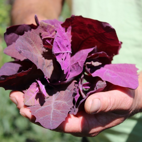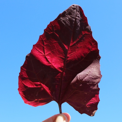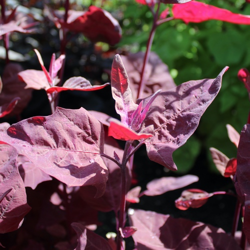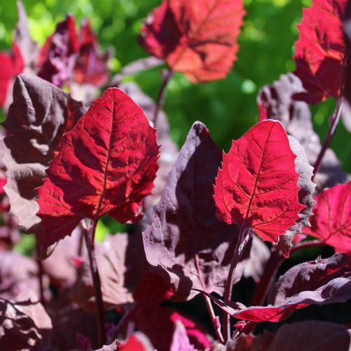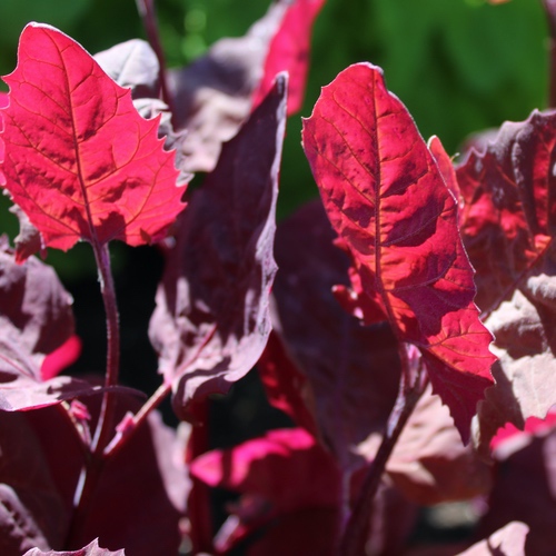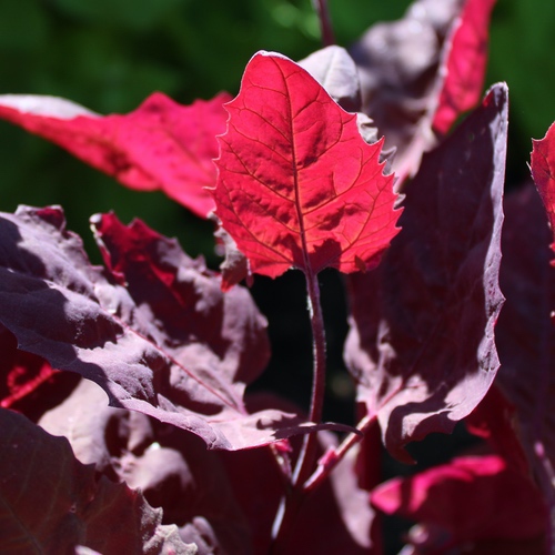Atriplex hortensis Leuchtend rote Blätter. Wenn das Sonnenlicht hindurch scheint, strahlen sie neonpink! Attraktiv und schmackhaft. Rubinrot ist eine Lokalsorte aus dem Burgenland in Österreich. 70 Korn Standort: Sonne, Halbschatten Lebensform: einjährig, sät sich selbst aus Verwendung: Salat; Gemüse Verwendbare Teile: Blätter Wuchshöhe: 300cm