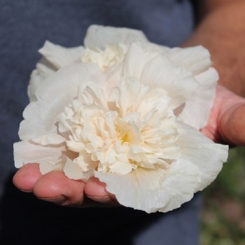 Alcea rosea Zartes Elfenbein im einem sanften apricotfarbenem Schimmer. Die Blüten sind gefüllt, sie geben dem Garten einen romantischen Hauch wie aus längst vergangenen Tagen. Pflanzen blühen bereits im ersten Jahr der Aussaat. Mit einer Höhe von 80cm klein genug, um bequem im Garten platziert zu werden oder in Töpfen zu wachsen. 25 Korn Standort: Sonne, Halbschatten Lebensform: winterhart, zweijährig Verwendbare Teile: Blüten Verwendung: Essbare Blüte, Tee Wuchshöhe: 80cm
