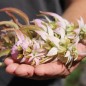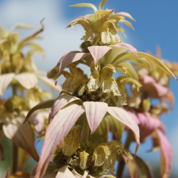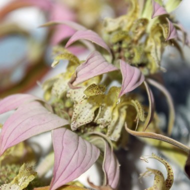 Monarda punctata Kein Oregano im klassischen Sinne, aber eine Monarde, die nach Oregano schmeckt und auch so verwendet werden kann. Die Pflanzen sind mehrjährig und blühen atemberaubend schön. Die Blütenkerzen besitzen rosa Hüllblätter und pagodenförmig angeordnete, hellgelbe Lippenblüten. Jede Blüte ist innen noch fein mit Rottönen punktiert. Die Blätter schmecken wie eine Mischung aus Oregano und Thymian, sie enthalten viel vom aromatischen Thymol. 50 Korn Standort: Sonne, Halbschatten Lebensform: winterhart, mehrjährig Verwendbare Teile: Blüten, Blätter Verwendung: Bienen- und Insektenweide, Essbare Blüten Wuchshöhe: 30cm