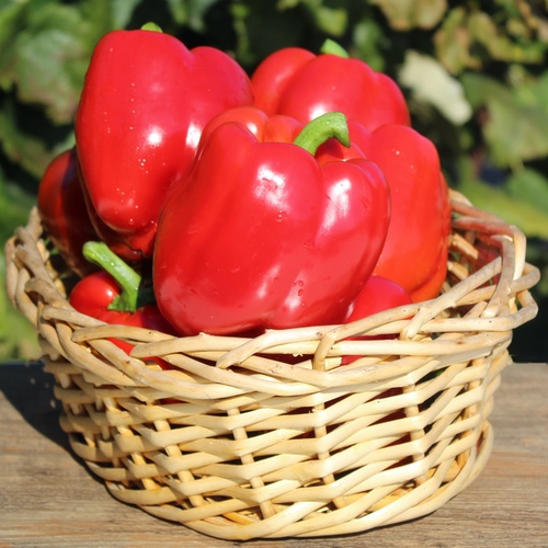 Capsicum annuum Die smaragdgrünen Früchte werden bei Reife rot. Groß, blockig, saftig und aromatisch. Sehr hoher Vitamin C-Gehalt. Lecker als Salat mit Frühlingszwiebeln, Rotweinessig und Salz - mehr braucht man nicht. 10 Korn Standort: Sonne, Halbschatten Lebensform: einjährig Verwendung: Gemüse, Würzen, Heilen Verwendbare Teile: Früchte Wuchshöhe: 70cm