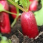 Raphanus sativus subsp. sativus Eine polnische Sorte. Die Radieschen sind langgestreckt, sie werden etwa 5-7cm lang. Die ersten Keimblätter schmecken sehr gut einfach auf dem Brot, sie sehen mit ihrer Herzform auch noch sehr dekorativ aus. Kleine Pflänzchen vom Vereinzeln haben noch so zarte Blätter, dass sie als ganzes im Salat gegessen werden können. Sie sind scharlachrot mit weißer Spitze. Die Haut ist zart und dünn, das Fleisch ist glasig weiß. Die Pflanzen wachsen zügig, unter optimalen Bedingungen reifen die Radieschen innerhalb von 30 Tagen. Bild 2: Salat mit Miniradieschen Opolanka vom Vereinzeln. Die Blätter sind jetzt noch so zart, dass ganze Pflanzen herrlich im Salat schmecken. Bild 3: so wächst Opolanka, die Schultern stehen über der Erde Bild 4: die Kinder helfen gern beim Ernten Bild 5: selbst die Kleinsten haben Spaß daran Bild 6: auch die ersten Keimblätter schmecken auf dem Käsebrot 430 Korn Standort: Sonne, Halbschatten Lebensform: einjährig Verwendung: Gemüse Verwendbare Teile: Radieschen, Blätter Wuchshöhe: 10cm
