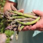 Asparagus officinalis ,Argenteuil‘ Eine historische französische Spargelsorte. Sie stammt aus dem Jahr 1700 und bewährt sich immer noch. Die Spargelstangen erscheinen recht früh und sind doch recht groß. Sie haben eine wunderbare runde Spitze und sind im oberen Drittel violett gefärbt. Eine vorzügliche Sorte zum Blanchieren mit einem süßlichem Geschmack. Angehäufelt entwickeln sich gebleichte, weiße Spargelstangen mit rosa Spitze; ohne Anhäufeln (wie Grünspargel) kann man lila Stangen mit dunkelgrüner Marmorierung ernten. Angehäufelt entwickeln sich gebleichte, weiße Spargelstangen mit rosa Spitze; ohne Anhäufeln (wie Grünspargel) kann man lila Stangen mit dunkelgrüner Marmorierung ernten. Bild 1 und 2: gebleichte Spargelstangen Bild 3: Laub im Sommer Bild 4-6: grün-violett geerntet ohne Anhäufeln Standort: Sonne, Halbschatten Lebensform: winterhart, mehrjährig Verwendung: Gemüse Verwendbare Teile: Spargelstangen Wuchshöhe: 100cm Topfgröße: 0,35l