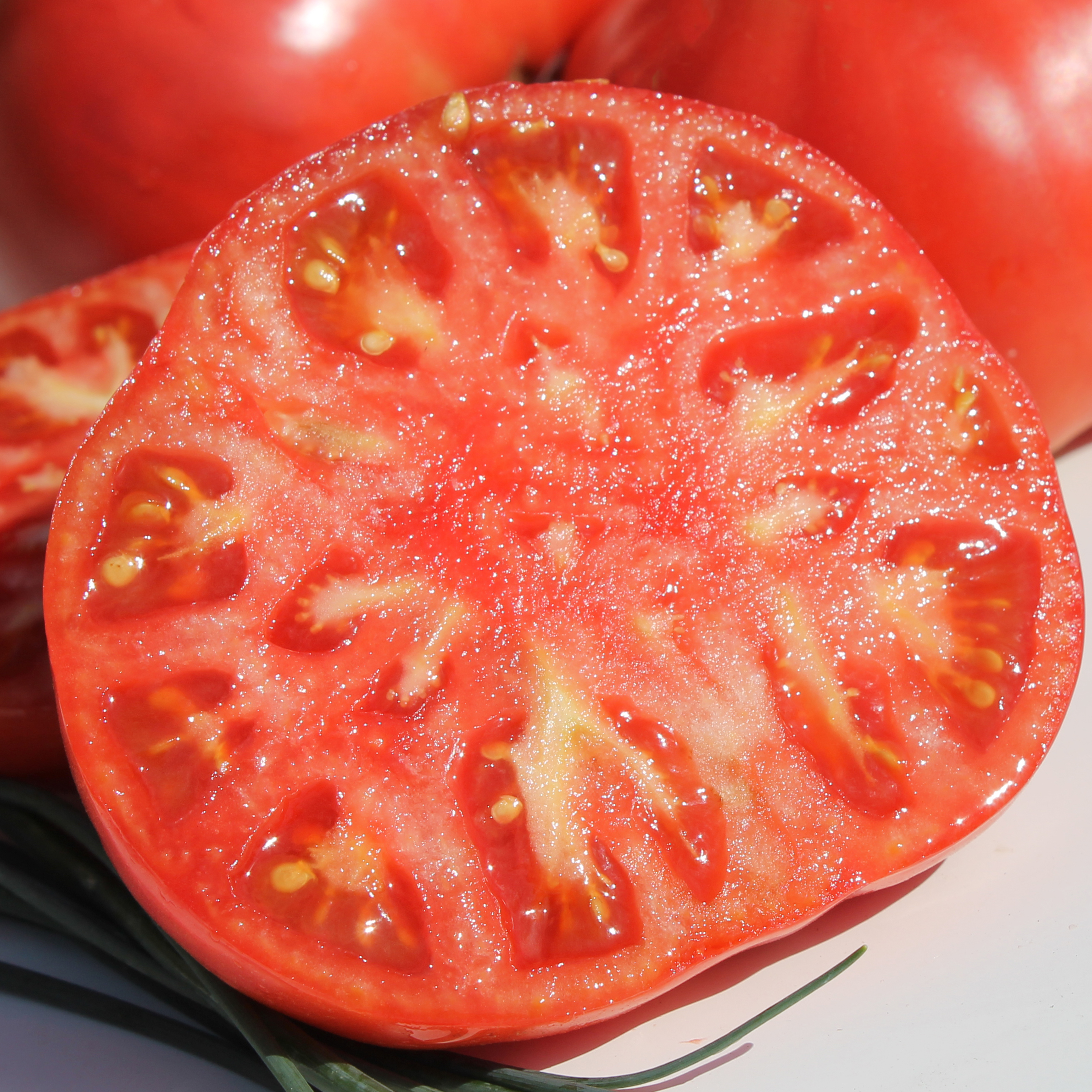 Lycopersicon esculentum Brandywine ist DIE klassische Sorte in den USA. Genau so groß, dass eine Scheibe auf ein Hamburgerbrötchen passt. Eine Tomate wiegt durchschnittlich 500g. Die Frucht ist dunkelrosa, innen wie außen. Es ist eine Fleischtomate. Von vielen wird sie als die am besten schmeckende Sorte unter den Fleischtomaten angesehen. Sehr gut, vollmundig, fruchtig, reich an Aromen und mit zartem Schmelz - es ist defintiv eine Sorte, die zu den besten gehört. Die Pflanzen sind kartoffelblättrig, das Laub erinnert eher an Kartoffelpflanzen als an Tomaten. Brandywine ist eine sehr alte Sorte, deren Ursprung nicht mehr zurückverfolgt werden kann. Sie ist stammt von vor 1886, soviel weiß man. 10 Korn Standort: Sonne, Halbschatten Lebensform: einjährig Verwendbare Teile: Früchte Verwendung: Gemüse Wuchshöhe: 150cm