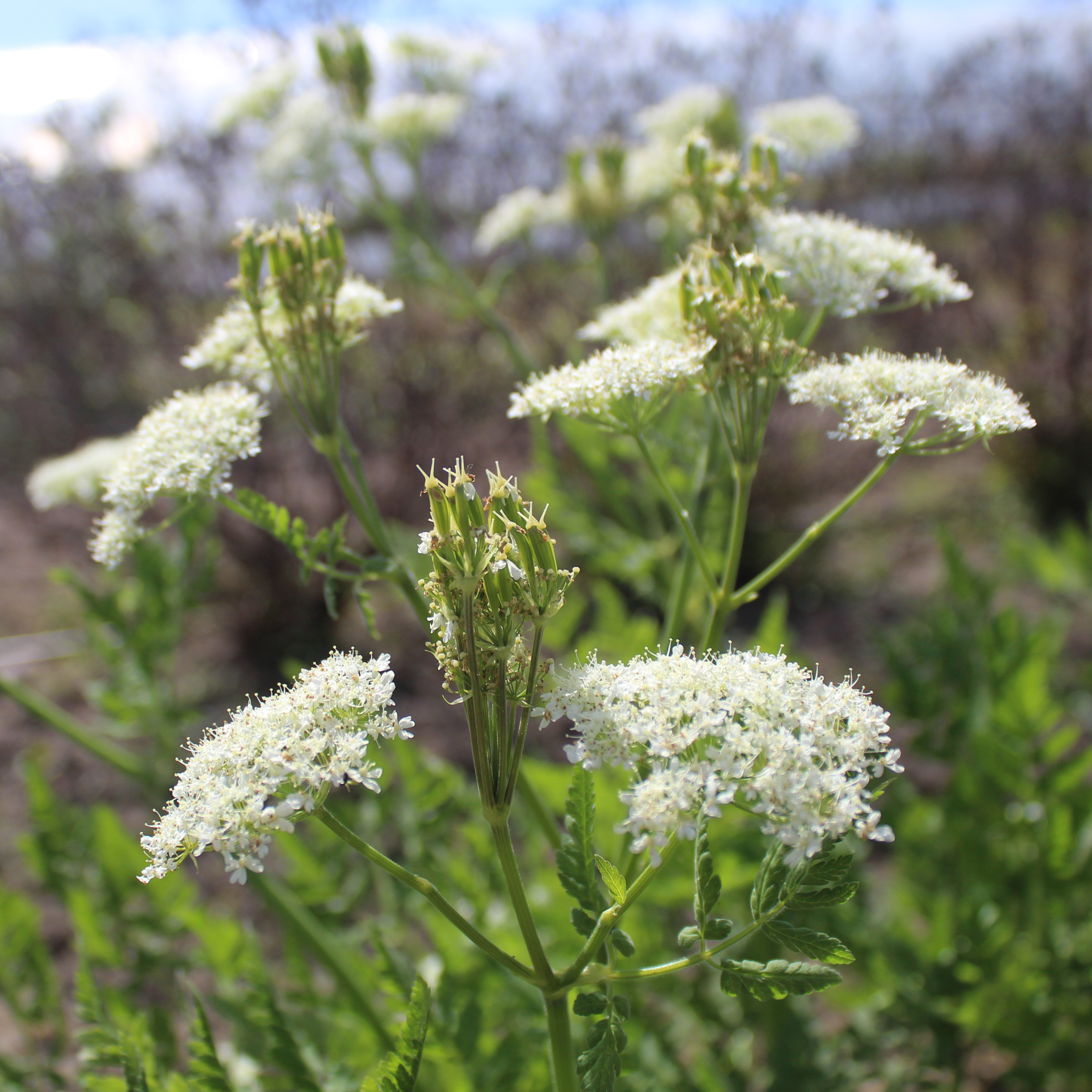 Myrrhis odorata Das feine Aroma vom ‚echten Kerbel’ finden wir in den großen farnartigen Blättern wieder. Die Blüten duften nach Honig, und die noch grünen Samenstände können als süße Nascherei gegessen werden. Bei Samenreife die schwarzen Samen ausfallen lassen, denn sie brauchen die winterliche Kälteperiode zum Keimen (= stratifizieren). Die Pflanze ist winterhart und ausdauernd. 5 Korn Standort: Sonne, Halbschatten, Schatten Lebensform: winterhart, mehrjährig Verwendung: Küche, Tee, Heilen, Duft Verwendbare Teile: Blätter, Blüten, Samen Wuchshöhe: 120cm