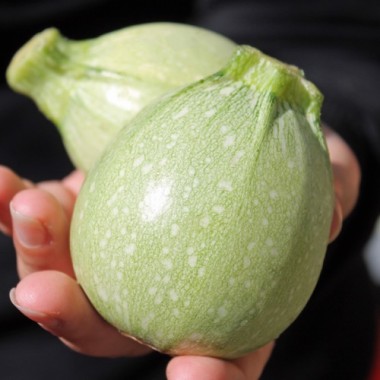 Cucurbita pepo Eine Zucchini, die aus der Provence stammt. Die Pflanzen bilden unzählige kugelrunde Früchte. Diese werden bei einem Durchmesser von 10cm geerntet, dann, wenn die Schale noch weich ist. Die Farbe ist hellgrün. Rezept: Gefüllte Ronde de Nice 4-6 Rondini, 2 Zwiebeln, 2 Knoblauchzehen, 1 Tomate, 250g Hackfleisch, 1 Mozzarella, Salz, Pfeffer, 2TL Tomatenmark, Paprikapulver, Olivenöl Das Fruchtfleisch der Rondini mit einem Teelöffel ausschaben und klein schneiden. Zwiebeln, Knoblauchzehen, Tomaten in kleine Würfel schneiden. Zuerst Zwiebeln und Knoblauch anbraten, dann Tomatenmark und Gemüsestücke hinzugeben und kurz garen lassen. Das Hackfleisch in etwas Olivenöl anbraten und mit Salz, Pfeffer und Paprikapulver würzen. Die Zwiebelmasse hinzugeben und mischen. Die Zucchinihälften mit der Hackfleischmasse füllen. Mozzarrellastreifen darauf legen. Bei 200°C 25 min. überbacken. 10 Korn Standort: Sonne, Halbschatten Lebensform: einjährig Verwendung: Gemüse Verwendbare Teile: Früchte Wuchshöhe: 40cm
