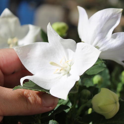 Platycodon grandiflorus Weiß bringt Licht in dunkle Ecken, die im Sommer von Bäumen beschattet werden. Die Blütenknospe sieht wie ein aufgeblasener Heißluftballon aus, er platzt auf und wandelt sich zu einem großen Stern. Rings um einen hohen Stiel bilden sie sich zu mehreren. Die Wurzeln der Ballonblume sind essbar und werden typischerweise in der asiatischen Küche verwendet. 250 Korn Standort: Sonne, Halbschatten Lebensform: halbwinterhart, mehrjährig Verwendbare Teile: Blätter, Wurzel Verwendung: Gemüse Wuchshöhe: 60cm