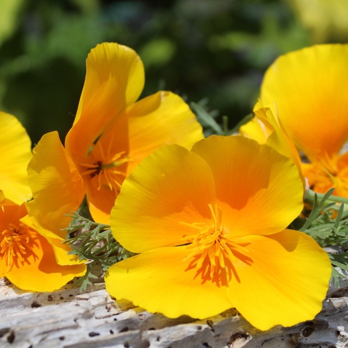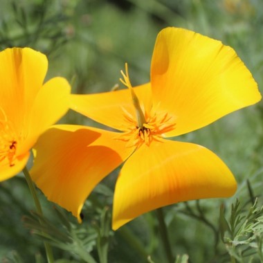 Eschscholzia californica Orangeblühendes, einjähriges Mohngewächs. Es ist die offizielle Staatsblume in Kalifornien. Ihr zu Ehren wird am 6. April der „California Poppy Day“ gefeiert. Die Pflanze ist ein Überlebenskünstler bei Dürre, denn die Samen können jahrelang im Boden überdauern. Dann, wenn es regnet, sprießen sie und überziehen ganze Landstriche mit ihren orangefarbenen Blüten. Viele Autoren berichten von der Essbarkeit der Samen und der Blütenblätter. Bei den Ureinwohnern Nordamerikas wurde sie als Medizinalpflanze bei Schmerzen verwendet. Tatsächlich ist sie heute in der Medizin anerkannt: in Europa als pflanzliches Arzneimittel, das bei mentalem Stress und Depressionen hilft. Insekten interessieren sich vor allem für die pollenreichen Blüten im Sommer. 180 Korn Standort: Sonne, Halbschatten Lebensform: einjährig Verwendbare Teile: nicht essbar Verwendung: Bienen- und Insektenweide Wuchshöhe: 35cm