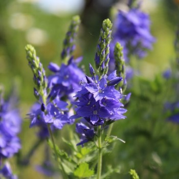Veronica teucrium Unglaublich farbintensive Blüten bildet dieser Ehrenpreis. Die Einzelblüten sind im Vergleich zu anderen Ehrenpreisarten auch sehr groß. Die langen Blütenrispen wachsen an 90cm hohen Stielen. Es sind gute Bienenweiden, die von vielen Insekten besucht werden. Die Art vom Norden Deutschlands bis zum Balkan heimisch, ein sicheres Zeichen, dass sie sehr gut an unser Klima angepaßt ist. 500 Korn Standort: Sonne, Halbschatten Lebensform: winterhart, mehrjährig Verwendbare Teile: nicht essbar Verwendung: Bienen- und Insektenweide Wuchshöhe: 90cm
