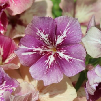 Phlox drummondii Töne wie aus einer verstrichenen Ära, langsam verblassendes pfirsich, zartes apricot, mattes violett, und leichtes purpur. Dieser Mix ist so dezent unaufdringlich und gleichzeitig so schön und bezaubernd mit seiner Farbgebung. Viele Blüten haben eine Sternenform, einige Blüten haben ein dunkles Auge, während andere marmoriert oder gesprenkelt sind. Die hübschen Blütenbüschel duften wie süßer Pudding. In größere Gruppen gepflanzt für romantische Maßlosigkeit und berauschende Exzesse. 50 Korn Standort: Sonne, Halbschatten Lebensform: einjährig Verwendbare Teile: Blüten Verwendung: Essbare Blüten, Duft, Bienen- und Insektenweide Wuchshöhe: 40cm